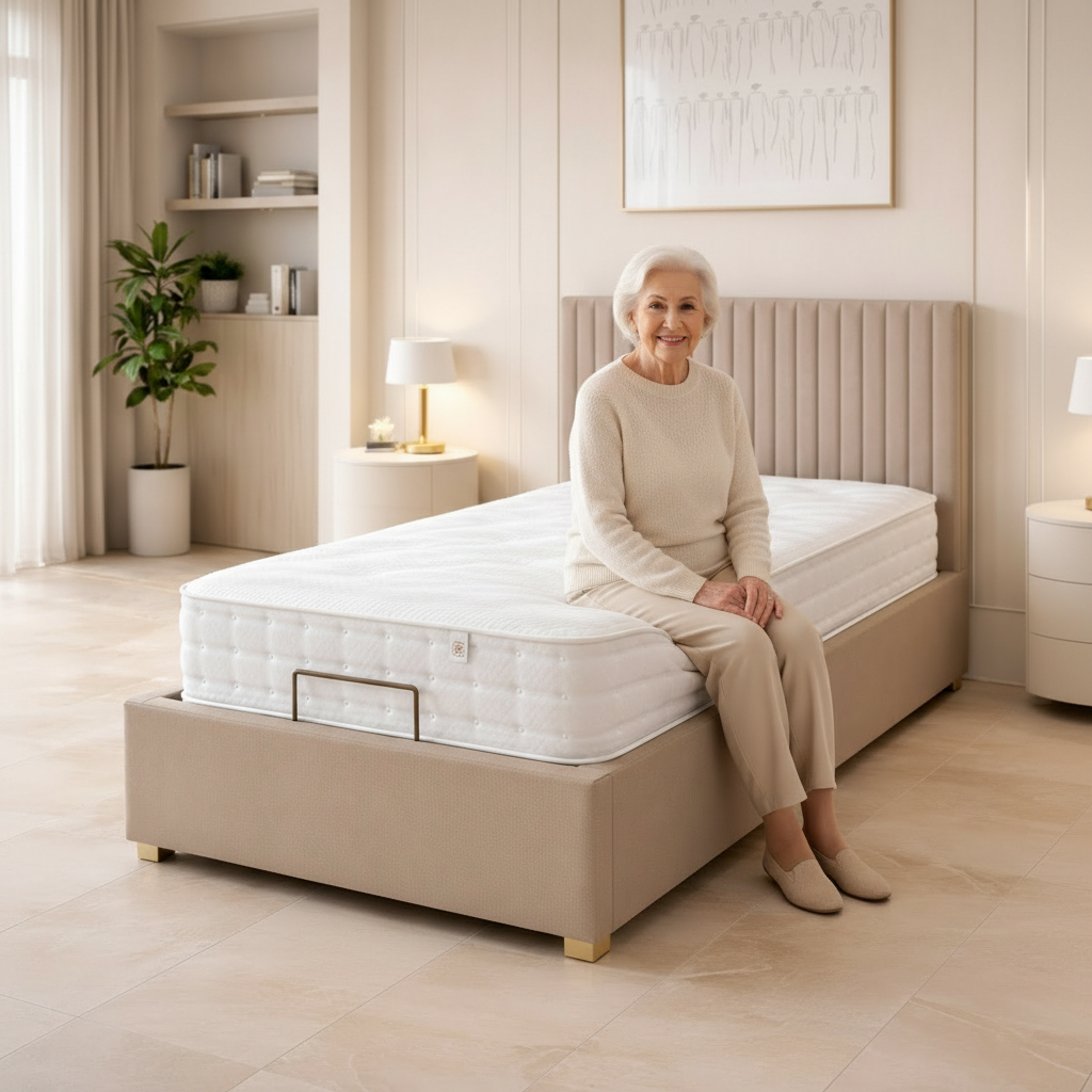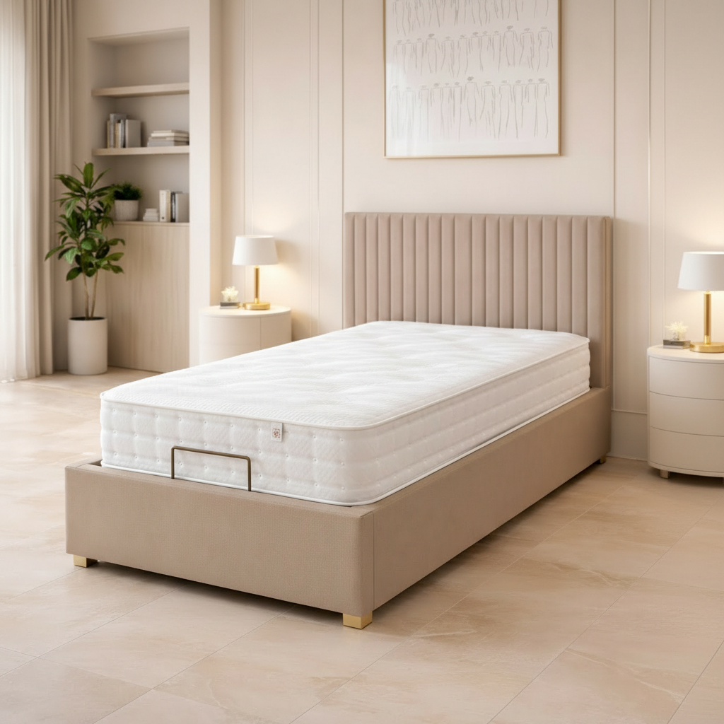 Experience luxury sleep with our Swift Electric Adjustable Bed, featuring a dual sleep system, remote-controlled head and foot adjustment, and an elegant upholstered frame. Designed for modern homes, this adjustable bed offers personalized comfort, ergonomic support, and silent motor technology for the ultimate relaxation experience.