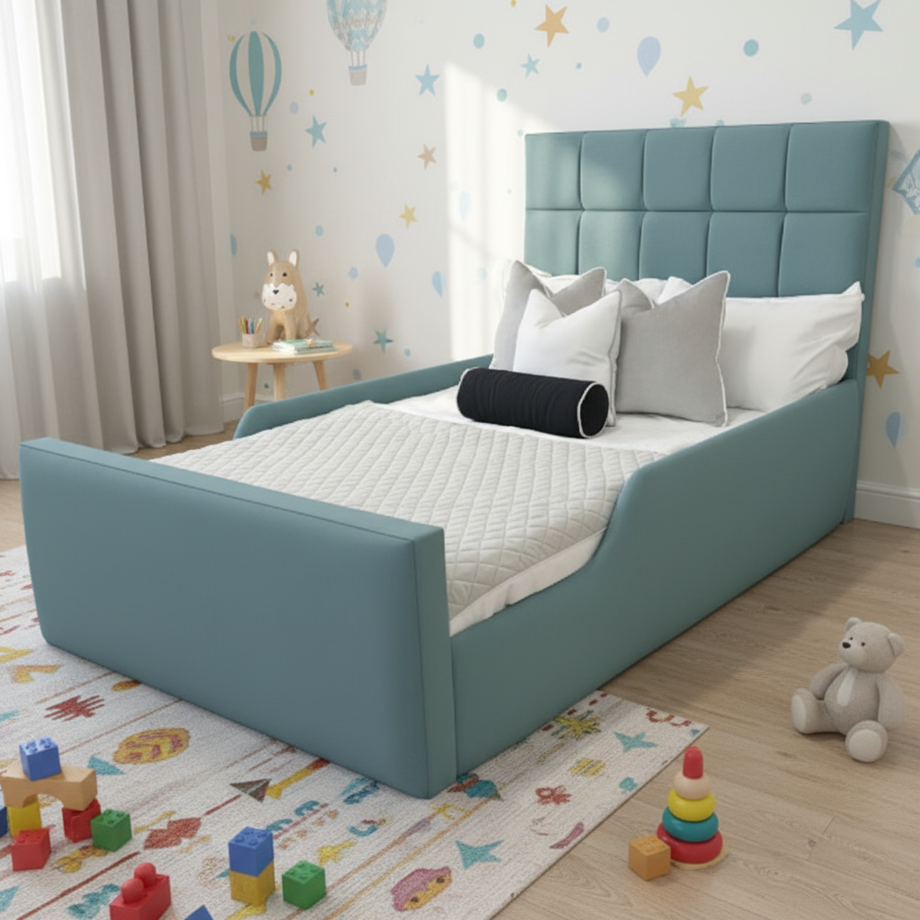 Designed with safety in mind, this kids’ divan bed features a secure base, smooth edges, and a sturdy lifting system to ensure worry-free everyday use. It’s available in multiple sizes and fabric options, making it suitable for toddlers, children, and growing teens alike.