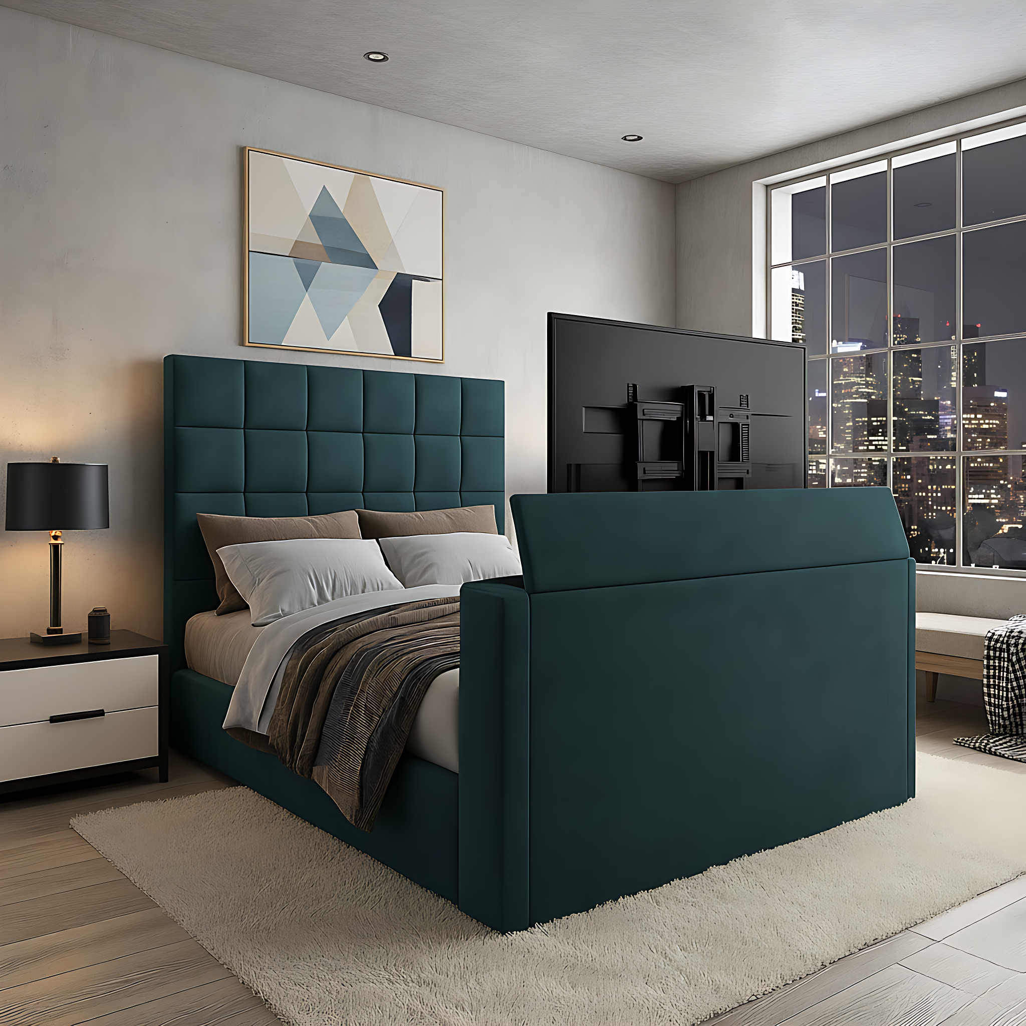 Experience luxury living with the CinemaDream TV Bed, combining restful sleep, modern design, and a built-in hidden TV for the ultimate entertainment experience.